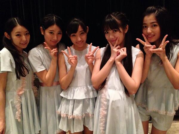 「ASIAN STONE」の白衣装でメンバー登場。まりちゃん(高橋麻里)とかなでし(白戸佳奈)の衣装にはピンクのヒラヒラが付いているのですが、これがターンするときとかにふわっと浮いて綺麗でした。まりちゃんは三つ編みまでいかないけど編み編みっぽい髪型でした。みもりん(富永美杜)もポニーテールというよりは一つ縛りって感じのおとなしめの髪型。