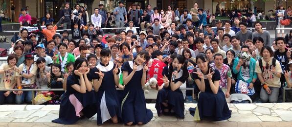 ここのステージはメンバーから360度お客さんが見える……はずですが、メンバーの背後には幕が貼ってあったので、270度?ぐらい?メンバーはお客さんに囲まれてて、斜め後ろのお客さんへのアピールもバッチリでした。あとショッピングモール名物フリースタイルのコドモが曲中ステージ上がりそうになっててちょっとハラハラしました(笑)。
