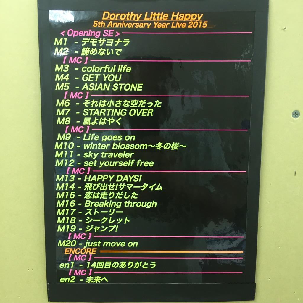 5年の間にうれしいことも楽しいこともいろいろたくさんあったけど、つらいときにこの曲に出会ったという話からの「Life goes on」。私も個人的につらいことがあった時期にこの曲が披露されて、iTunesで先行配信されたので速攻ダウソして聴きまくって、特に夜とか空を見上げながら聴きまくって、あんだけ過酷な状態だったドロシーが生きていくんだから俺も生きなきゃって思ったことを思い出しました。そっからの「Winter blossom〜冬の桜〜」元々大好きな曲が一段とエモくて泣きそうになりました(俺が)。さらに続く「sky traveler」はO-EASTで聴いてタイトル決まる前から一発で大好きになったなあとか、さらに「set yourself free」はcolorful lifeのリリイヴェ行きまくったらかなでし(白戸佳奈)にものすごい勢いでお礼言われたなとか、“向かい風も背中で受けて追い風にしてしまえばいい”ってそれ後ろ向きになるから解決になってないよなあとかいろいろ思い出しました。